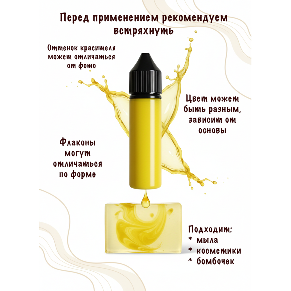 Пигмент «Лимонный» — это яркий, солнечный цитрусовый оттенок с чистым желтым тоном, напоминающий спелый лимон. Такой цвет идеально подходит для создания летних мыльных коллекций, освежающих десертов, капкейков и декоративных элементов в handmade-мыле.